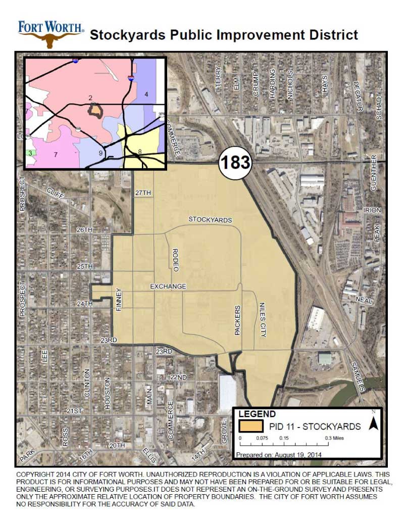 Established in 2003, PID 11 covers commercial properties in the Stockyards area. It operates continuously with an assessment rate of $0.12 per $100 of assessed property value.